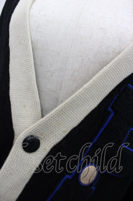 PINK HOUSE / 野球ワッペンVネックカーディガン ブラック I-26-02-13-052-LO-TO-SA-ZI