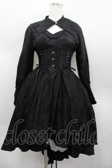 草苺大福鴨 / サイド編み下げ&刺繍ジャケット・ビスチェワンピース 黒 I-26-02-13-088-LO-OP-SA-ZI