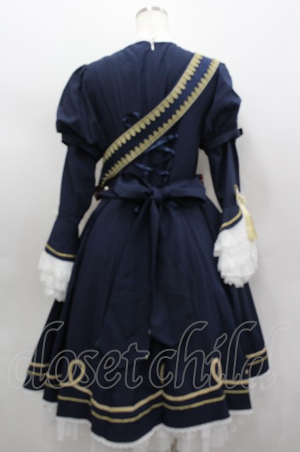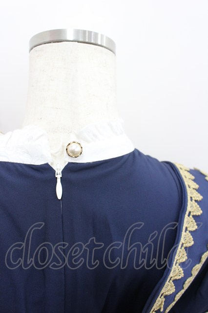 Le Miroir / ハイネックナポレオン長袖ワンピース ネイビーx白 I-26-02-13-094-0-OP-SA-ZI