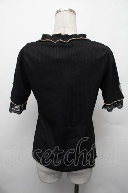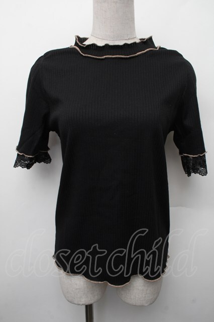 axes femme / バイカラーメロー袖レースプルオーバー 黒 S-26-02-13-038-AX-TO-AS-ZS