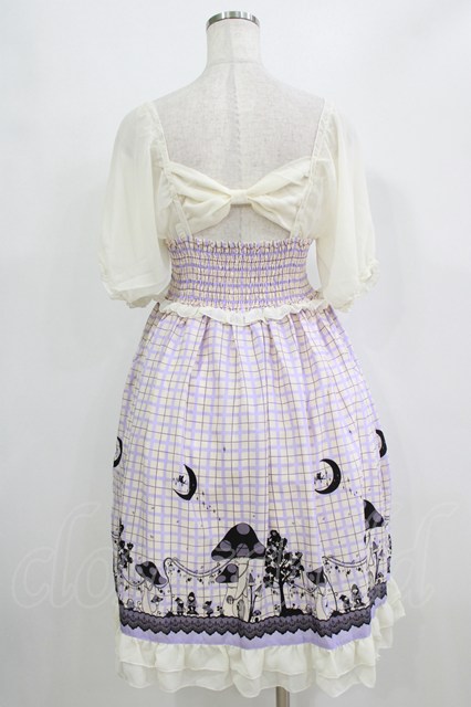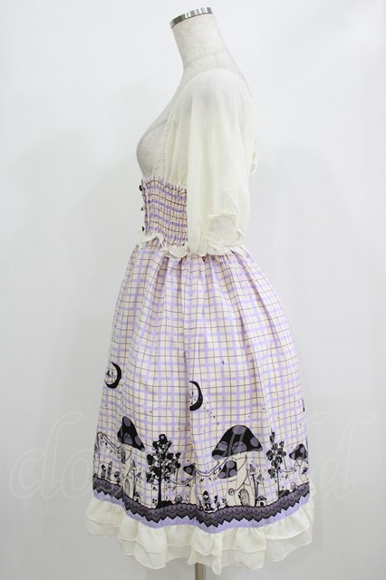 axes femme POETIQUE / きのこプリントチェックワンピース M オフ/ラベンダー H-26-02-18-021-AX-OP-NS-ZH
