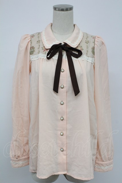 Ank Rouge / ストライプ柄切替ブラウス ピンク T-26-02-15-001-CA-BL-SA-ZT