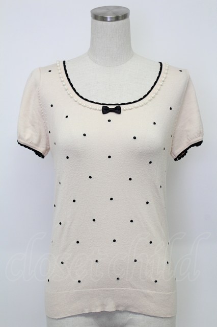 LODISPOTTO / 水玉半袖ニットトップス M ベージュ T-26-02-15-027-LO-TO-SA-ZT [2100060000044252-T-26-02-15-027-LO-TO-SA-ZT]