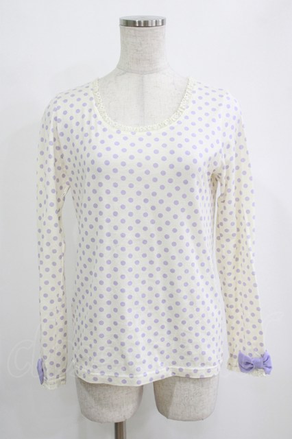 Emily Temple cute / リボン付ドットカットソー オフ×パープル H-26-02-17-036-ET-TO-KB-ZH [2100030000087210-H-26-02-17-036-ET-TO-KB-ZH]