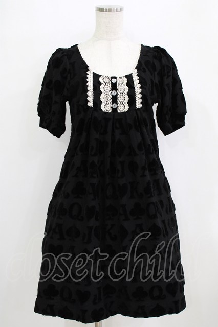 Emily Temple cute / アルファベットベロアワンピース クロ H-26-02-17-010-ET-OP-KB-ZH [2100030000087202-H-26-02-17-010-ET-OP-KB-ZH]