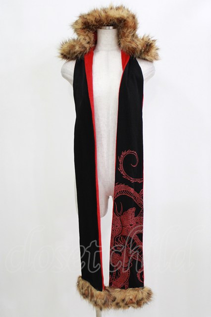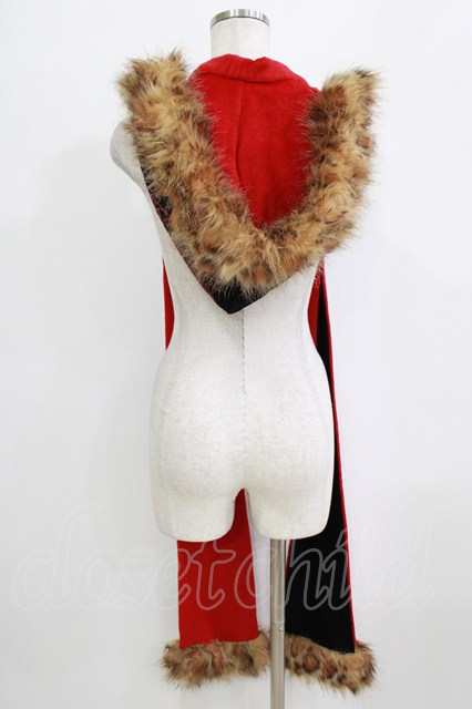 Qutie Frash / ファーフード付きストール 黒×赤 H-26-02-17-053-QU-ZA-AK-ZH [2100030000086861-H-26-02-17-053-QU-ZA-AK-ZH]