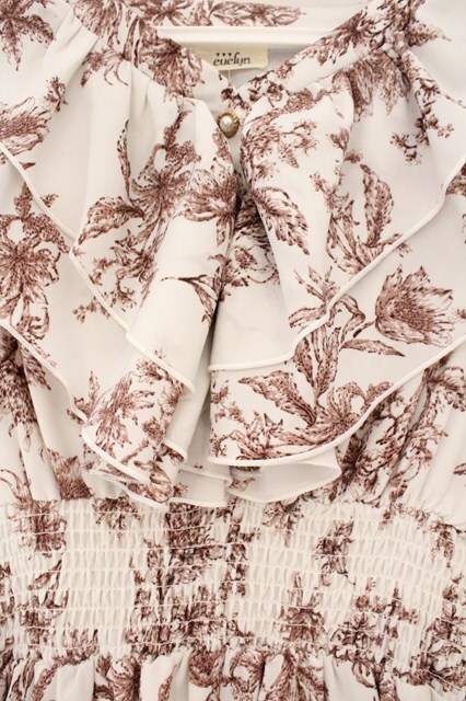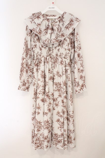 evelyn / 花柄シャーリングワンピース シロ×ブラウン O-26-02-16-054-LO-OP-OW-OS [2100080000074520-O-26-02-16-054-LO-OP-OW-OS]