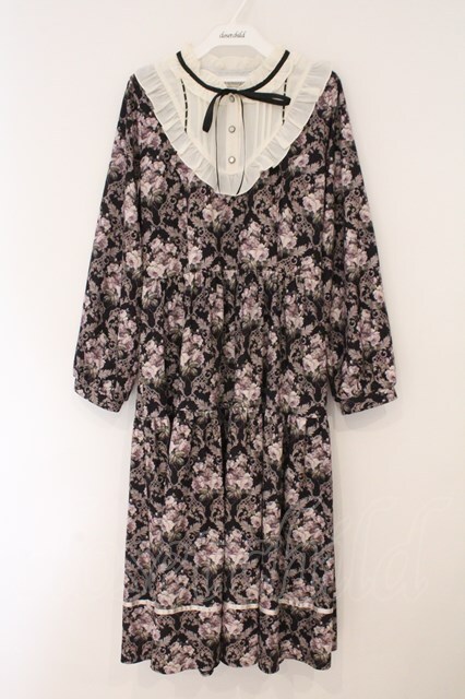 axes femme / ウォールオーナメント柄ワンピース クロ×オフ O-26-02-16-076-AX-OP-IG-OS