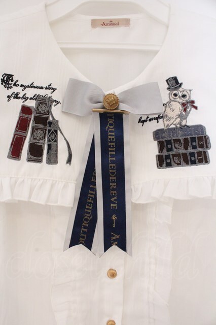 Amavel / Bibliotheque Classiqueブラウス F シロ×ネイビー O-26-02-16-105-CA-BL-OW-OS