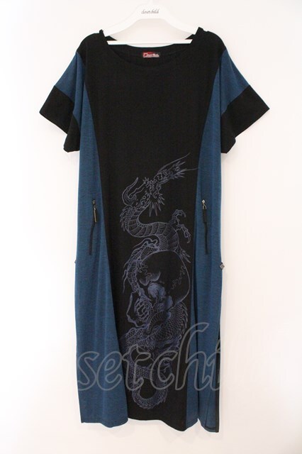 Qutie Frash / BIGロングカットソー ブラック×ブルー O-26-02-16-088-QU-OP-OW-OS [2100080000074570-O-26-02-16-088-QU-OP-OW-OS]