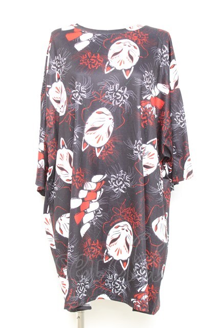 ACDC RAG / 狐面と彼岸花半袖チュニックヒュージTシャツ 黒 Y-26-02-17-057-PU-TO-SZ-ZY