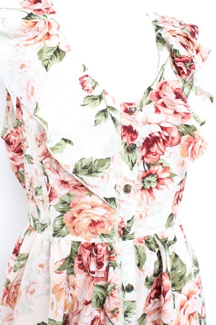 axes femme / 大花柄スリット入りワンピース M 生成り Y-26-02-17-094-AX-OP-SZ-ZY