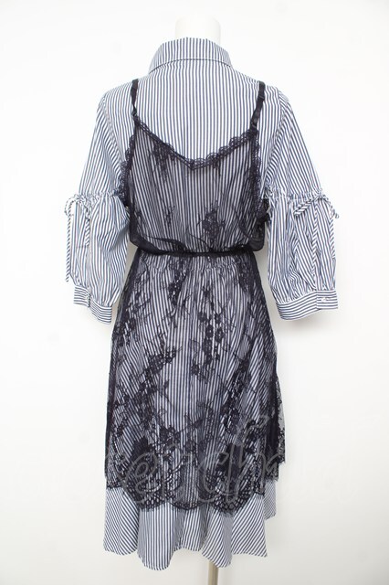 axes femme / レースキャミ付きシャツワンピース M 紺 Y-26-02-17-137-AX-OP-SZ-ZY