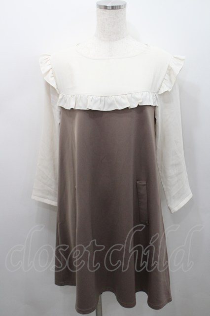le reve vaniller / フリルヨークバイカラーワンピース M ベージュ I-26-02-15-065-LO-OP-SA-ZI [2100060000042403-I-26-02-15-065-LO-OP-SA-ZI]