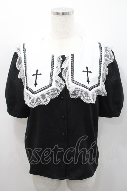 MA*RS / クロス刺繍スクエア襟半袖ブラウス 黒X白 I-26-02-15-047-EL-BL-SA-ZI [2100060000050517-I-26-02-15-047-EL-BL-SA-ZI]