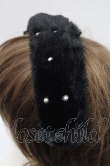 m petit by misako / ファーパールヘッドドレス 黒X白 I-26-02-15-115-LO-AC-SA-ZI