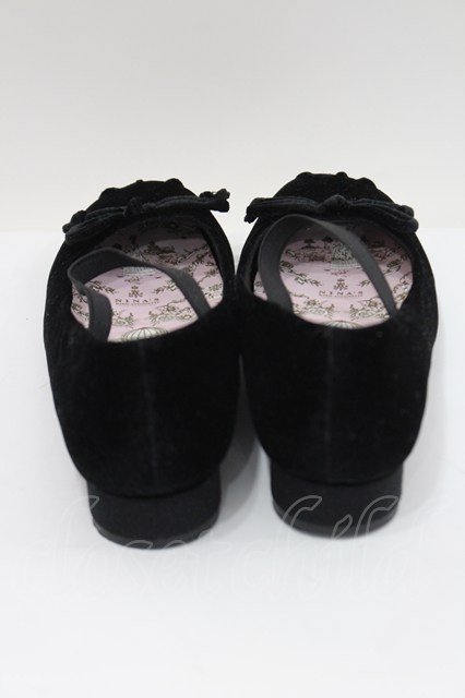 m petit by misako / NINA’Sコラボ ベロアパンプス LL 黒 I-26-02-15-125-LO-SH-HR-ZI