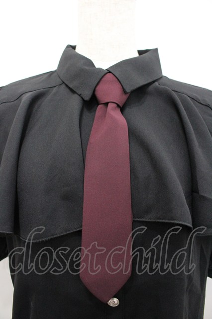 axes femme POETIQUE / タイ付ラッフルフリル半袖ブラウス 黒 I-26-02-15-002-AX-BL-HR-ZI