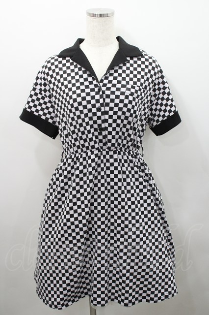 Jamie エーエヌケー / 市松柄半袖ワンピース ピンクX黒 I-26-02-15-061-LO-OP-SA-ZI