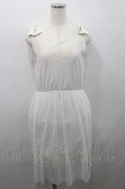 himitsu by syrup.(RoseMarie seoir) / 肩リボンドットノースリーブワンピース 白 I-26-02-15-059-LO-OP-SA-ZI