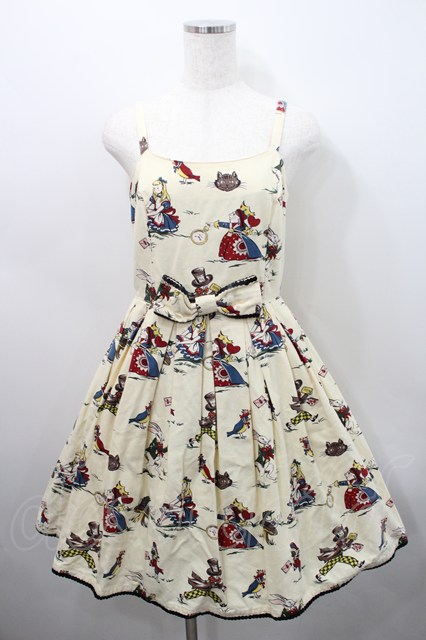 Emily Temple cute / ワンダーランドウエストリボンノースリーブワンピース オフシロ I-26-02-15-090-ET-OP-SA-ZI