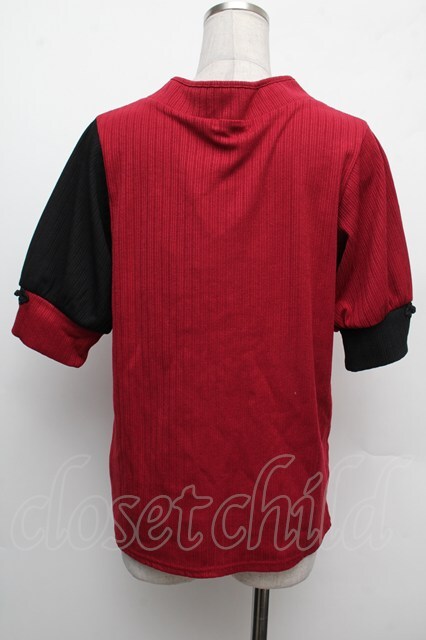 axes femme / チャイナ釦バイカラープルオーバー 赤 S-26-02-15-023-AX-TO-AS-ZS