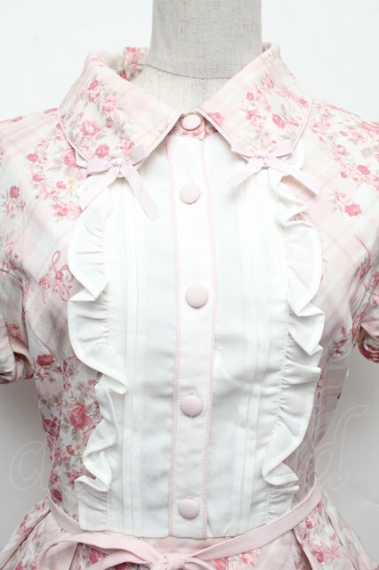 LIZ LISA / チェック額縁花柄ワンピース ピンク S-26-02-15-039-LO-OP-AS-ZS