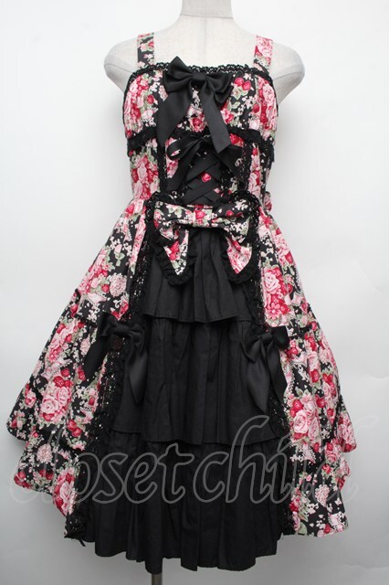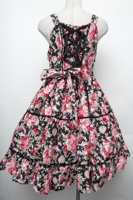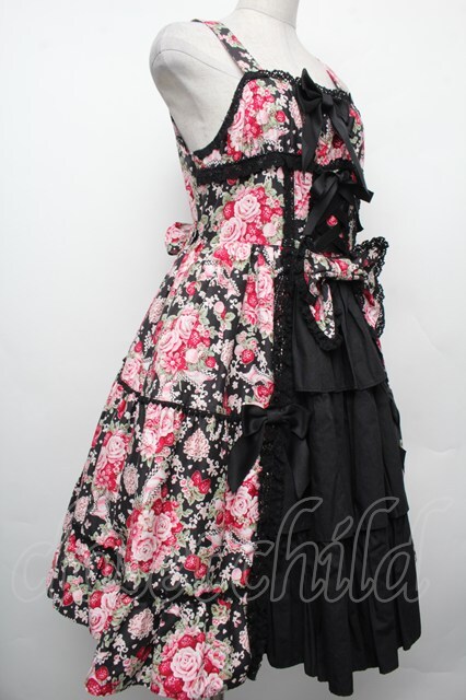 BABY,THE STARS SHINE BRIGHT / シュガーブーケ〜永遠の乙女の憧れ〜柄ジャンパースカートIII 黒xピンク S-26-02-15-042-BA-OP-HR-ZS