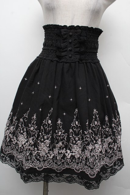 axes femme POETIQUE / ローズ刺繍スカラップスカート 黒 S-26-02-15-057-AX-SK-AS-ZS