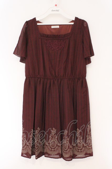 axes femme / 裾パネルプリントワンピース M ワイン O-26-02-17-029-AX-OP-IG-OS