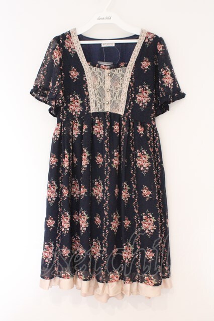 axes femme / ローズ縦ラインワンピース M ネイビー O-26-02-17-031-AX-OP-IG-OS