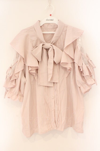 DearMyLove / ショルダーレースモテフリルボウタイブラウス 5L ピンク O-26-02-17-048-0-BL-IG-OS