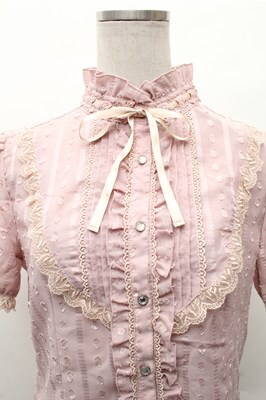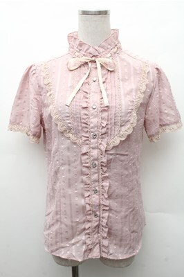 axes femme / カットドビーストライプ半袖ブラウス ピンク S-26-02-17-015-AX-BL-AS-ZS