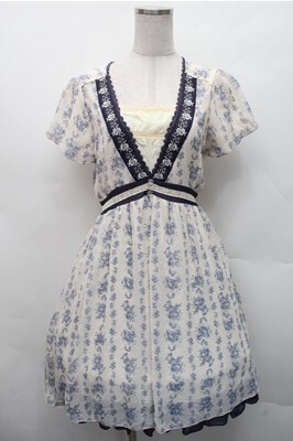 axes femme / ブーケストライプワンピース オフx紺 S-26-02-17-041-AX-OP-AS-ZS