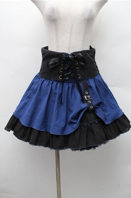 ALGONQUINS / ふんわりティアードスカート 黒x青 S-26-02-17-042-AL-SK-AS-ZS