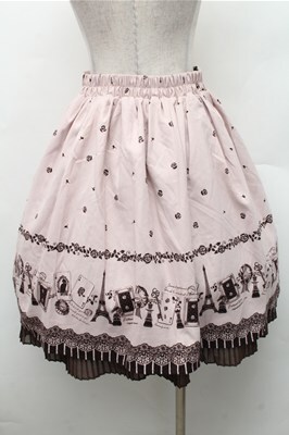 axes femme / 単色パネルパリ柄スカート ピンク S-26-02-17-045-AX-SK-AS-ZS