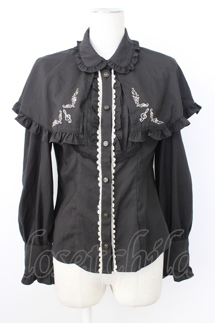 axes femme kawaii / 刺繍入りケープ付き2wayブラウス 黒 T-26-02-20-012-AX-BL-SA-ZT