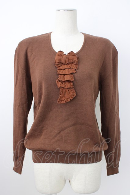 KANEKO ISAO / リボンモチーフ使いニットプルオーバー ブラウン T-26-02-20-015-EL-TO-OW-ZT [2100080000061730-T-26-02-20-015-EL-TO-OW-ZT]