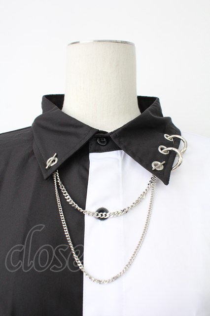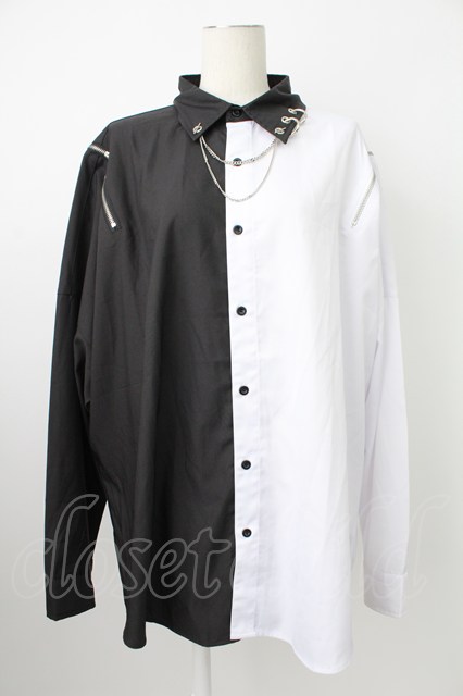 THICC / 肩ZIPシャツ 黒X白 T-26-02-18-002-PU-BL-SA-ZT [2100060000041785-T-26-02-18-002-PU-BL-SA-ZT]
