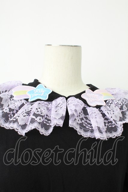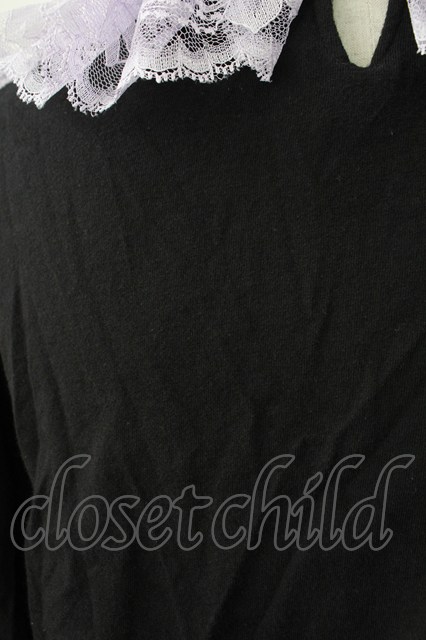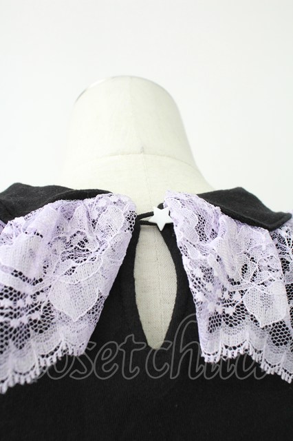 Nile Perch / 流れ星ワッペン襟カットソー 黒Xラベンダー T-26-02-18-003-LO-TO-SA-ZT