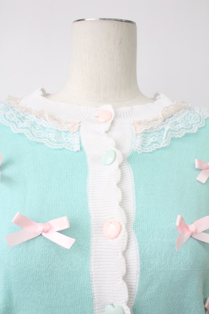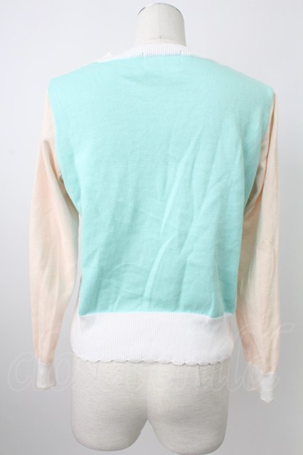 Nile Perch / リボンデザイン2カラーカーディガン サックスXアイボリー T-26-02-18-005-LO-TO-SA-ZT
