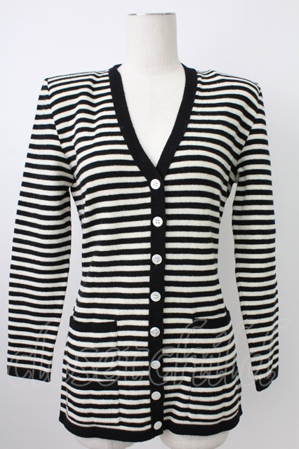 PINK HOUSE / ストライプVネックカーディガン ブラック×ホワイト T-26-02-18-009-LO-TO-SA-ZT [2100060000046027-T-26-02-18-009-LO-TO-SA-ZT]