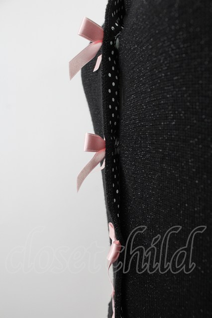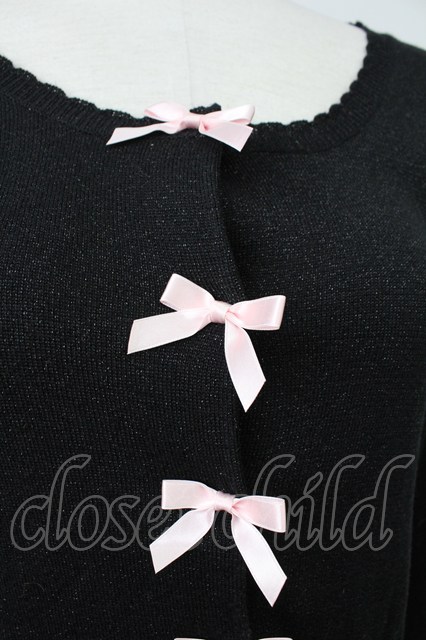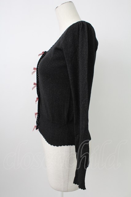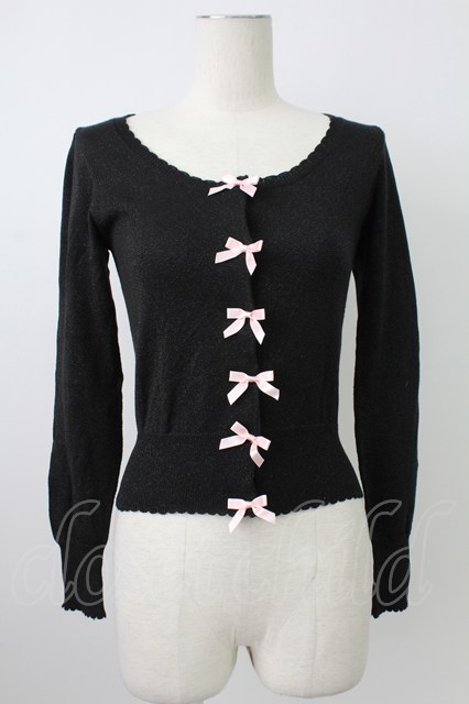 Emily Temple cute / ラメリボンニットカーディガン 黒ラメXピンク T-26-02-18-010-ET-TO-SA-ZT