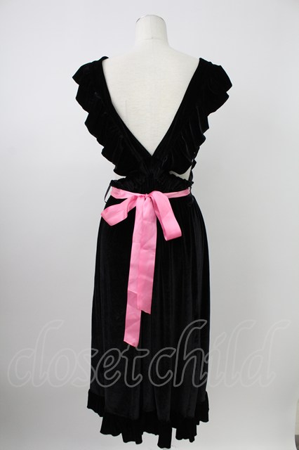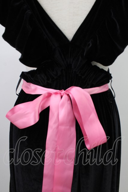 Nile Perch / ミニローズ柄ベルベットジャンパースカート 黒xピンク T-26-02-18-016-LO-OP-SA-ZT [2100060000045670-T-26-02-18-016-LO-OP-SA-ZT]