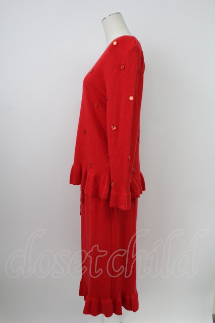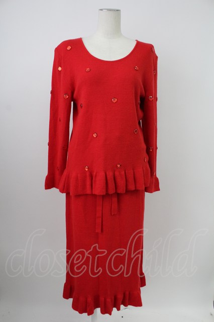 PINK HOUSE / 丸ビジューニットトップス&ニットスカートセットアップ 赤 T-26-02-18-020-LO-TO-SA-ZT
