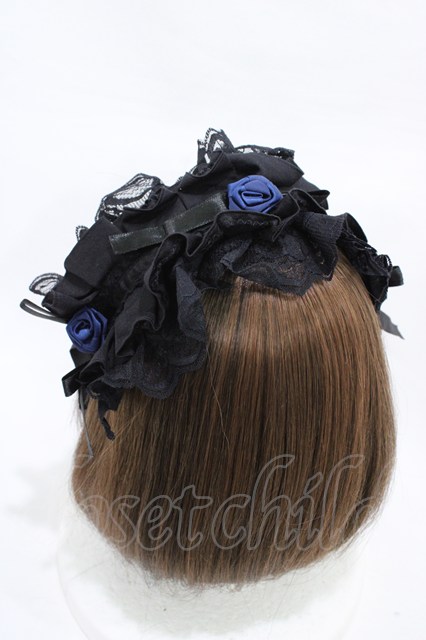 MARBLE / サテンバラ付きタックプリーツヘッドドレス 黒×青 H-26-02-18-1005-GO-AC-KB-ZH