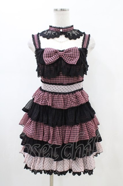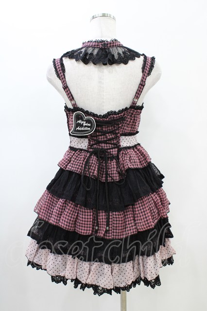 ALGONQUINS / 切替リボンジャンパースカート F ピンク×黒 H-26-02-18-1019-AL-OP-AK-ZH