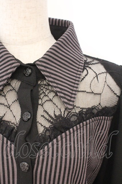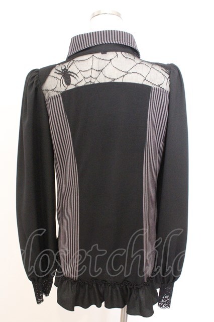 Qutie Frash / 限定クモメッシュパフブラウス M ストライプ(ブラック) O-26-02-18-045-QU-BL-OW-OS