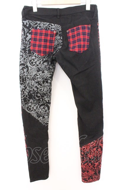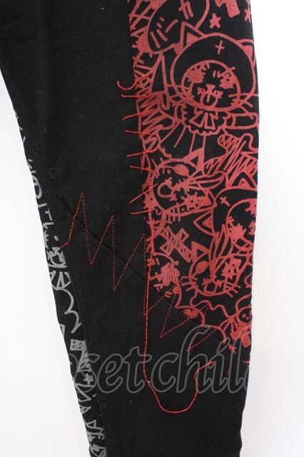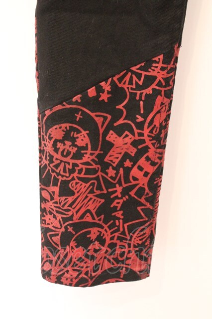 HANGRY&ANGRY / コミック風プリント継ぎ接ぎパンツ ブラック×レッド×グレー O-26-02-18-011-HN-PA-IG-OS