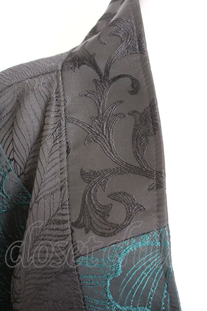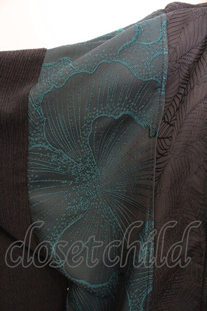 Qutie Frash / 着物ロングカーデ ブラック×グリーン O-26-02-18-046-QU-TO-OW-OS [2100080000074847-O-26-02-18-046-QU-TO-OW-OS]